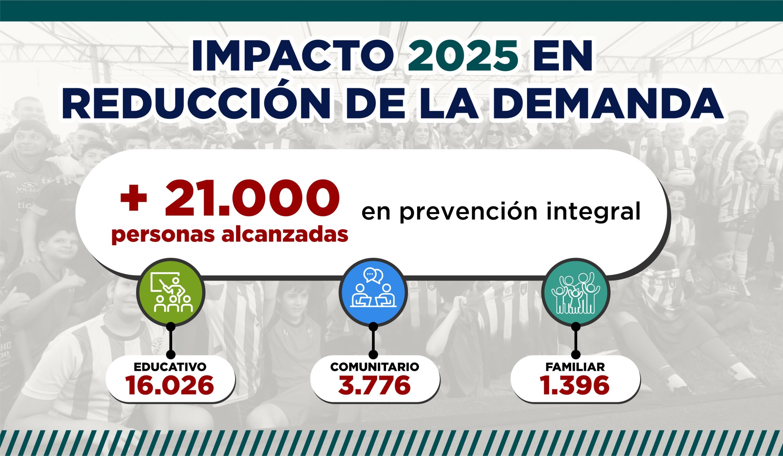 En el ámbito educativo, solo en 2025, se alcanzaron 16.026 personas, lo que representa un 391 % de cumplimiento de la meta anual, consolidando a la prevención escolar como una de las estrategias más demandadas a nivel nacional.