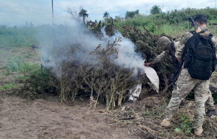 Durante 10 días de intensas operaciones, personal operativo de la SENAD, con apoyo de helicópteros de la Fuerza Aérea Paraguaya y la Policía Federal del Brasil, ejecutaron incursiones aéreas y terrestres en zonas con alta concentración de cultivos ilícitos de cannabis en el departamento de Canindeyú, principalmente dentro de la Reserva Natural Morombí, Pindó y 7 Montes.
