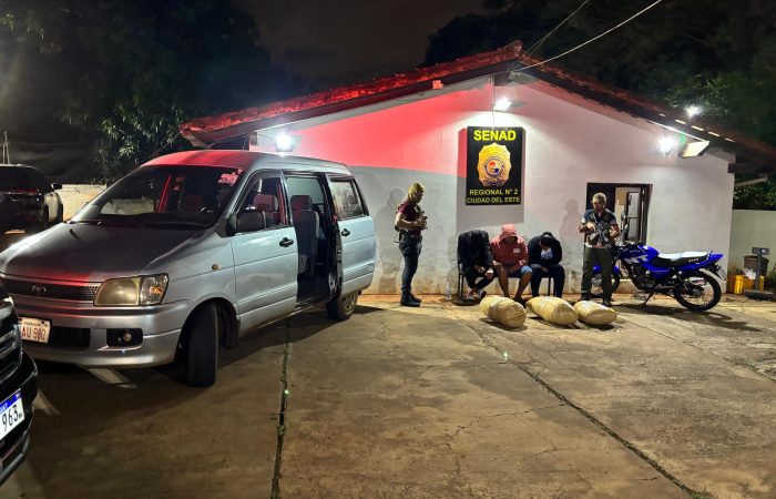 Mientras transitaban en el barrio Ciudad Nueva, los agentes interceptaron el móvil para una inspección, momento en que detectaron que transportaban una carga de droga con destino al lado brasileño.