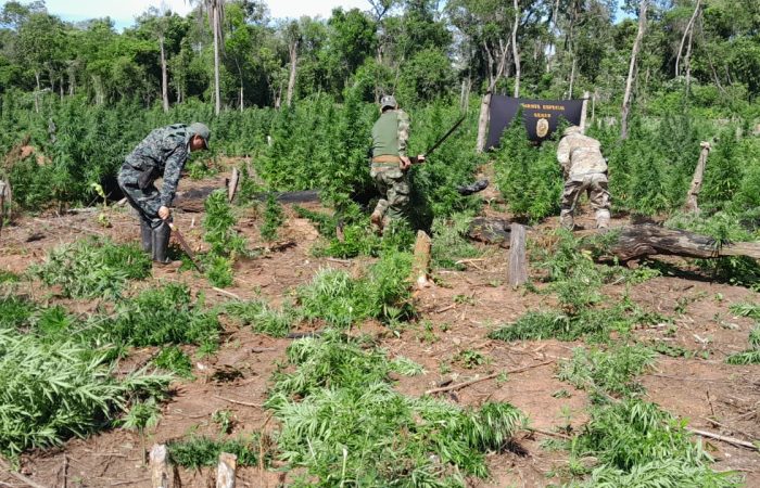 Las acciones de esta nueva etapa se desarrollan en zonas boscosas de Caaguazú y Canindeyú, con énfasis en el área de la Reserva Natural Morombi, uno de los principales puntos de expansión de cultivos ilícitos detectados en la frontera. En el lugar, los equipos binacionales ejecutan incursiones aéreas y terrestres para la detección y eliminación de plantaciones de marihuana, centros de acopio y campamentos de procesamiento.