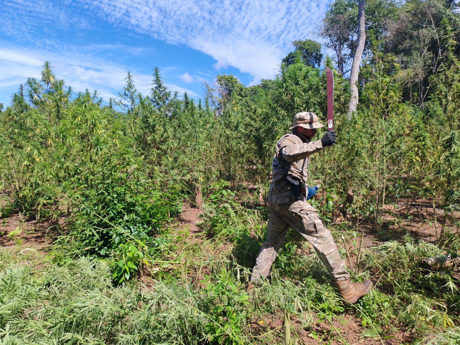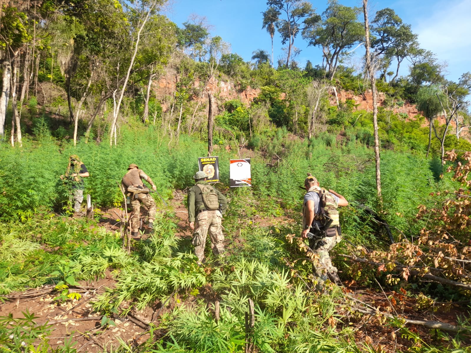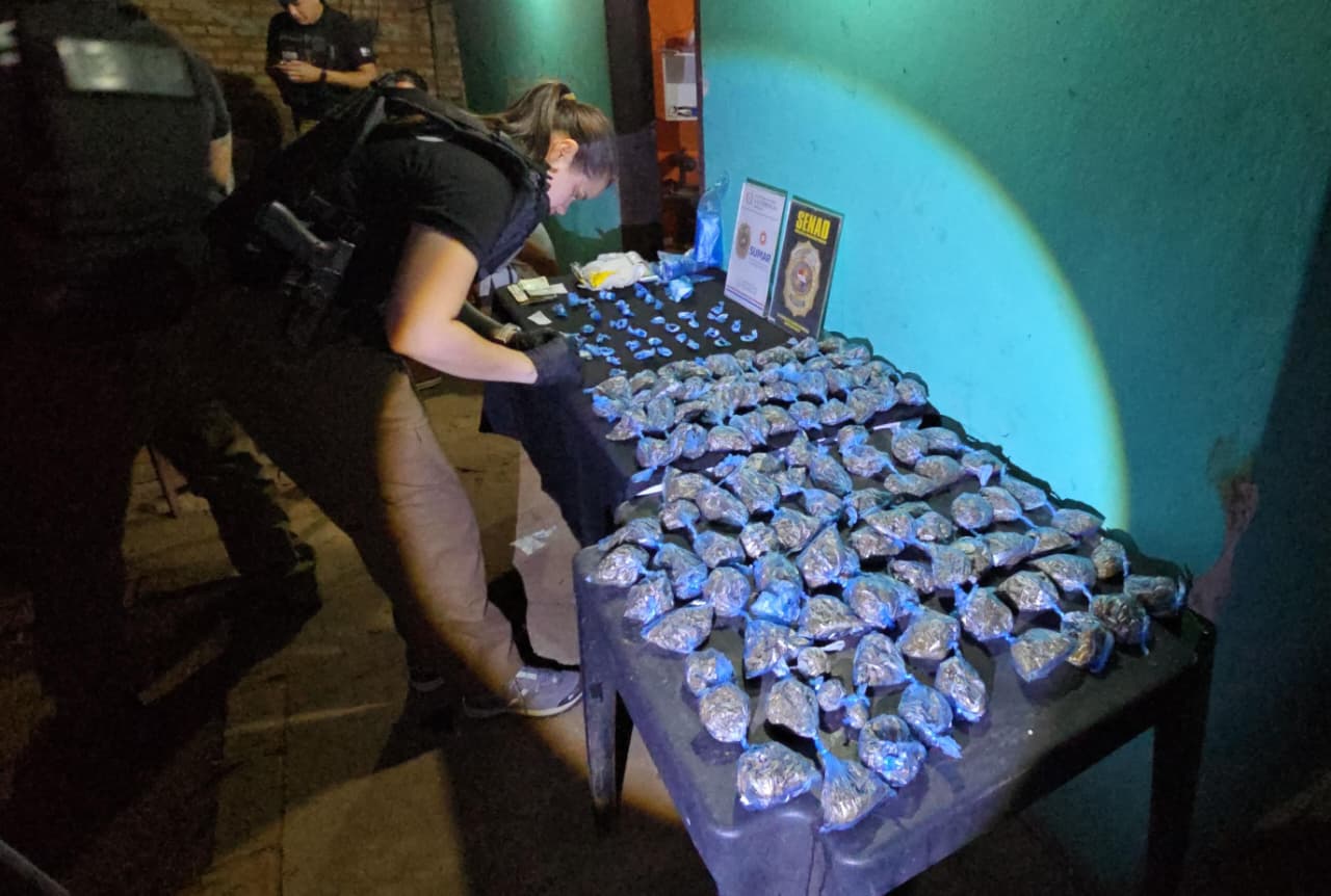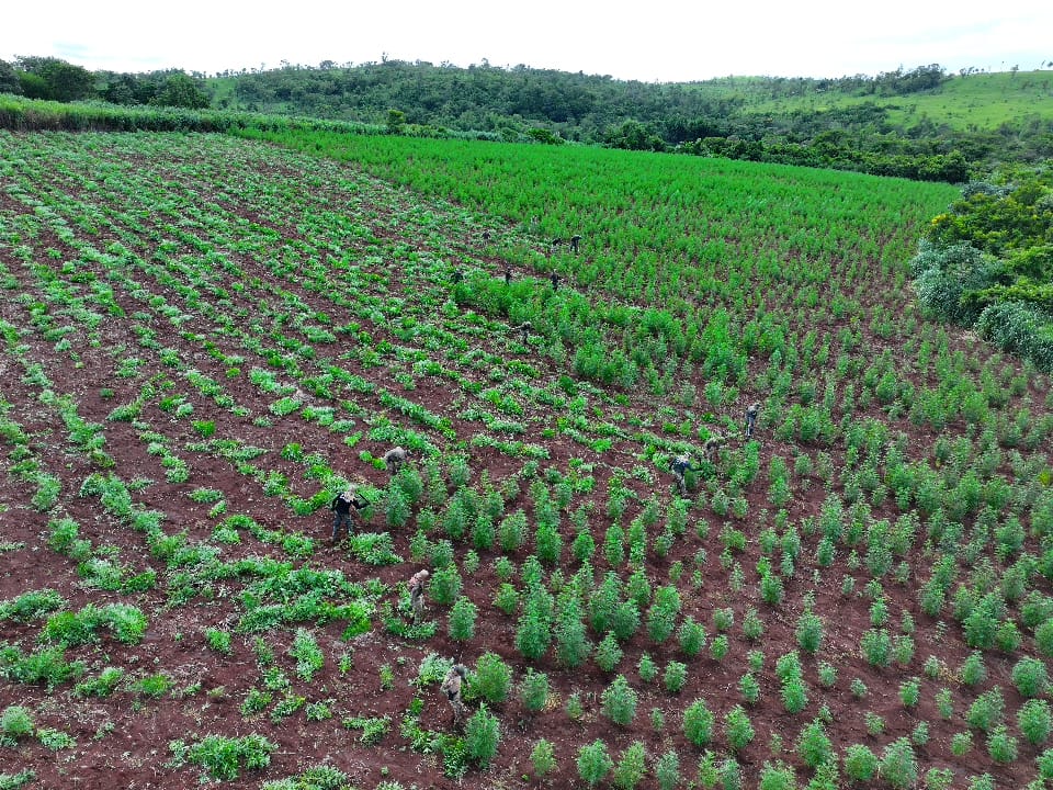 Una comitiva integrada por Agentes Especiales de la Regional N° 7 de Concepción y el Ministerio Público, representado por el fiscal Arnaldo Arguello, llevó adelante una serie de allanamientos en Sargento José Félix López, con el objetivo de desarticular una estructura dedicada a la producción de drogas. Las intervenciones culminaron con el allanamiento de dos propiedades rurales donde se detectaron extensas plantaciones de cultivos ilícitos. En una propiedad fueron erradicadas 4 hectáreas de marihuana y se incautaron 10 kilos de semillas. En la segunda, se localizaron 5 hectáreas más junto con 60 kilos de semillas de marihuana. El operativo permitió anular una producción estimada en 27 toneladas de marihuana, que tendría como destino el Brasil, generando un perjuicio económico cercano al millón de dólares a las estructuras del narcotráfico que operan en la zona. Seguimos firmes en la lucha contra el crimen organizado, afectando directamente su capacidad de producción y expansión.