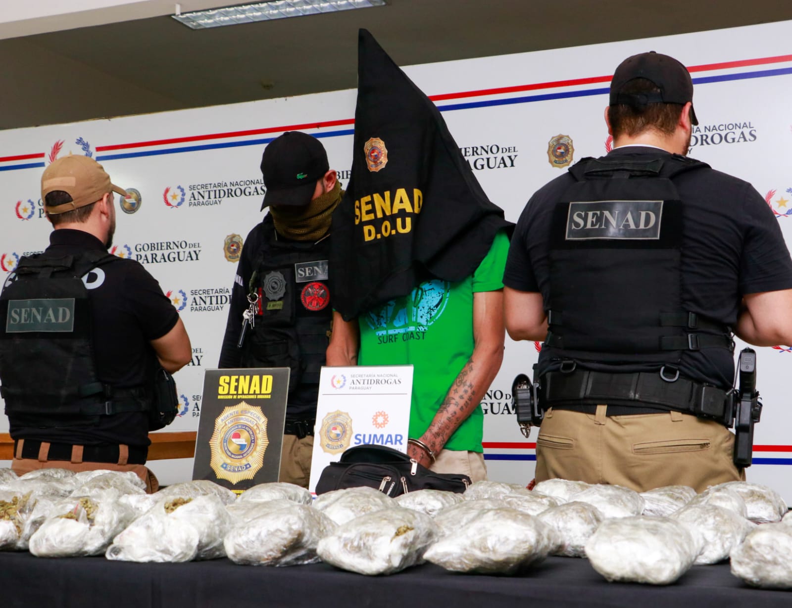 En el marco del Plan SUMAR, Agentes Especiales de la Dirección de Operaciones Urbanas realizaron la interceptación de una carga de marihuana que tenía como destino su distribución en ciudades del departamento Central. El procedimiento se llevó a cabo sobre la vía pública, específicamente en la calle Tarumá de la ciudad de Asunción, en inmediaciones de la estación de buses, donde fue interceptado Rodrigo Ramón Loza Martínez (36), alias «Krusty». El mismo había retirado minutos antes un paquete desde una empresa de encomiendas de la zona, situación que fue seguida mediante tareas de inteligencia. De acuerdo a los datos manejados, la droga sería procedente de la zona de Capitán Bado, departamento de Amambay, uno de los principales puntos de origen de este tipo de envíos ilícitos. Por disposición de la fiscal interviniente, Abg. Pamela Pérez, el detenido fue trasladado hasta la base de operaciones de la SENAD, donde se procedió a la apertura del paquete en su presencia. Como resultado, se incautaron 52 paquetes que contenían capullos (cogollos) de marihuana, equivalentes a unas 1.500 dosis o “tocos”, listas para su distribución final en calles y entornos urbanos. Este tipo de intervenciones permite cortar los circuitos de distribución que suelen encargarse de abastecer los focos de microtráfico, afectando directamente la disponibilidad de drogas en las ciudades.