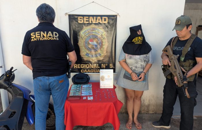 La Secretaría Nacional Antidrogas (SENAD) desmanteló un esquema de microtráfico que operaba mediante la modalidad de delivery de drogas en motocicleta, utilizado para abastecer puntos de venta y consumidores en el Barrio San Lorenzo de la ciudad de Caaguazú.