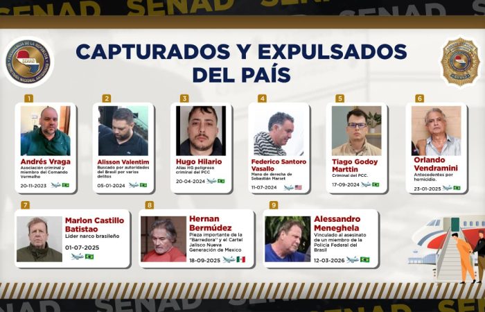En ese contexto, integrantes y emisarios de organizaciones como el Primer Comando Capital (PCC), el Comando Vermelho, así como individuos vinculados al Cártel Jalisco Nueva Generación, han sido capturados y expulsados del país, enfrentando procesos judiciales en donde son requeridos.