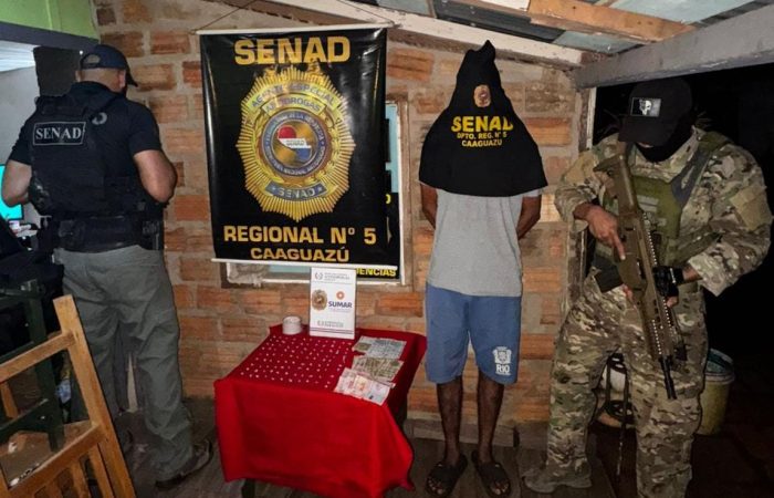 Durante el procedimiento fue detenido un hombre de 47 años, identificado como Manuel García Cáceres. En su poder se hallaron evidencias consistentes en 100 dosis de cocaína tipo pasta base (crack), listas para su distribución.