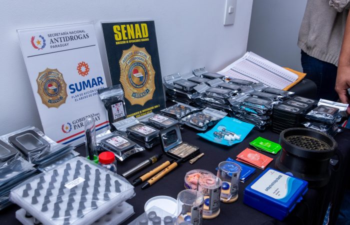 Agentes Especiales de la Secretaría Nacional Antidrogas (SENAD), en el marco del Plan SUMAR, desarticularon un laboratorio clandestino de procesamiento y empaquetado de derivados de cannabis que operaba en un edificio del barrio Ykua Karanda’y de la ciudad de Luque.
