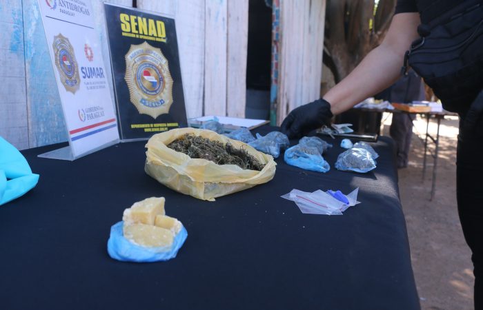 En el marco del Plan de Acción contra el Abuso de Drogas – SUMAR, Agentes Especiales de la Dirección de Operaciones Urbanas, con apoyo del Departamento de Respuesta Inmediata y Fuerzas Especiales de la SENAD, allanaron una vivienda ubicada en el barrio Remansito de Villa Hayes, donde funcionaba una supuesta carnicería que en realidad escondía un activo punto de venta de drogas.