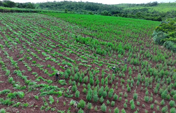 Tras trabajos de inteligencia e incursiones de campo previas, fue detectado un complejo mecanizado de producción de marihuana compuesto por 15 parcelas interconectadas, que abarcaban una superficie cercana a las 60 hectáreas.