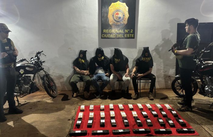 Los detenidos fueron identificados como Nelson Gaona Arzamendia, Bernardo Viera Medina, Yoni Daniel Serbian y entre ellos un menor de edad. Todos circulaban en motocicletas con la droga oculta entre sus pertenencias.